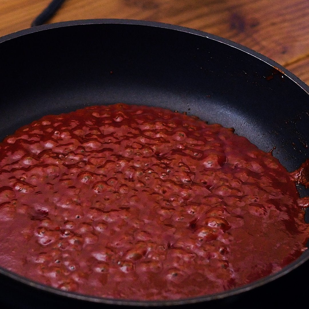 フライパンに (a) の調味料を入れて中火で沸騰させます。