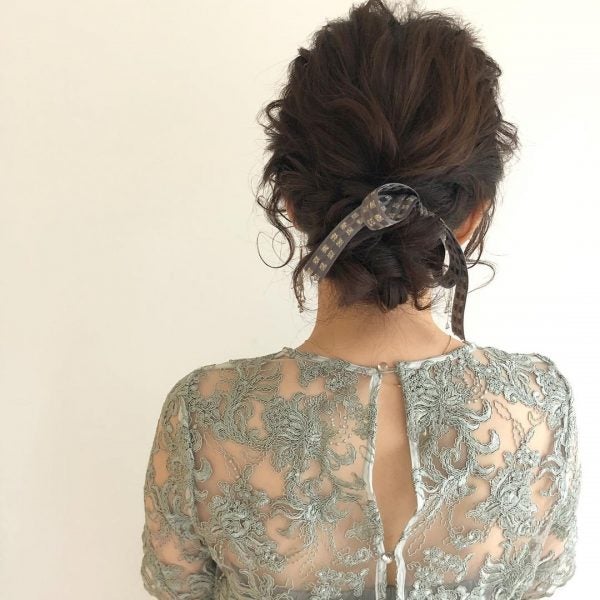 存在感のあるリボンをつければ、まとめ髪を簡単にランクアップさせてくれます。