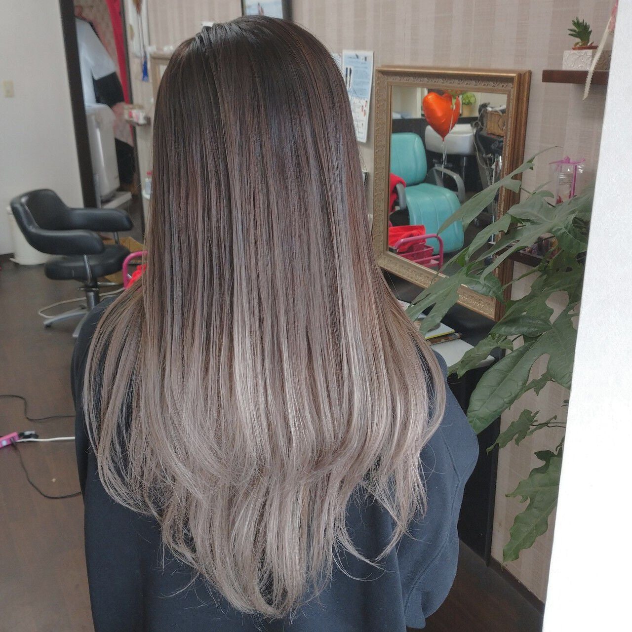シンプルなロングヘアには、ミルクティーベージュカラーのグラデーションスタイルがぴったり。ヘアアレンジするとグラデーションの見え方も変えられるのが嬉しいですね。