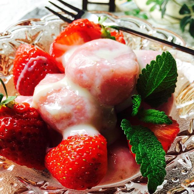 ご飯の後に!おいしい白玉イチゴ
