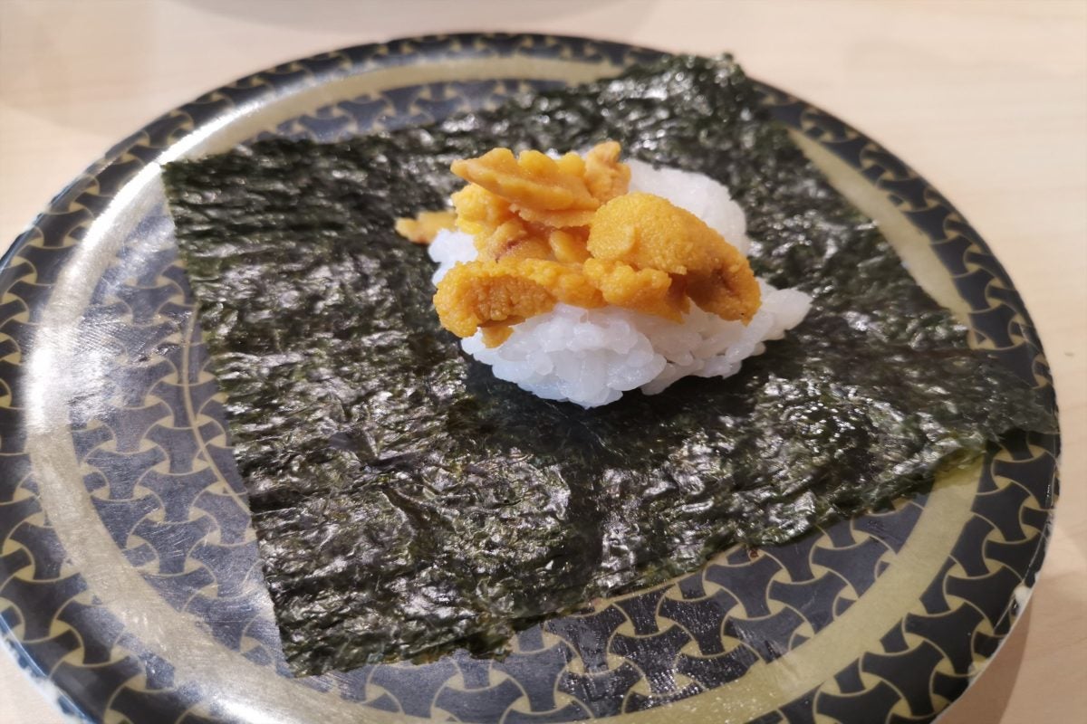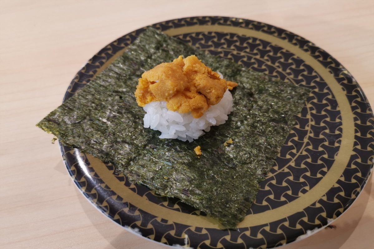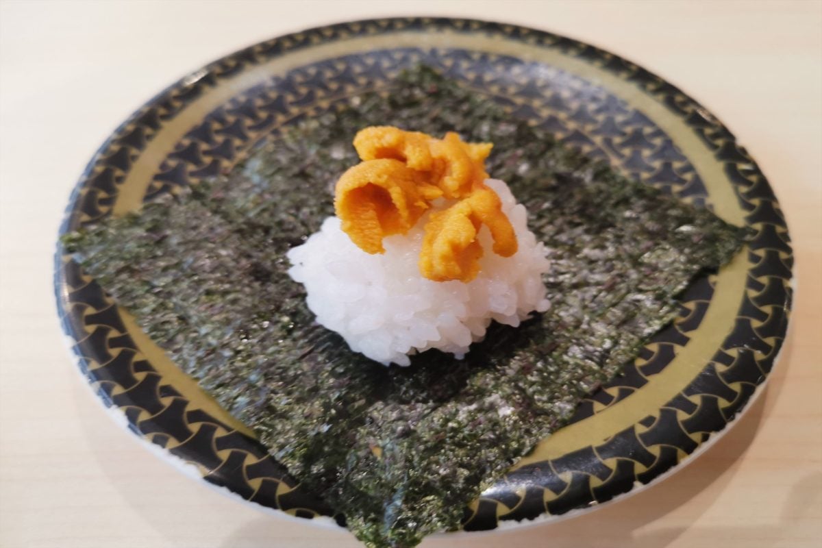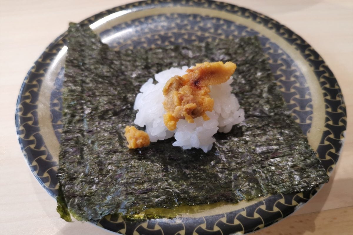 もうこれでダメならやめよう...と思いつつ注文した5皿目で、ついに見本とほぼ差がない寿司が来た! これなら100点をあげられるレベルの、うにもたっぷりで見た目も満足である。