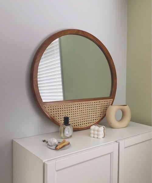 ミラーなのに存在感たっぷりで、メイクスペースやディスプレイスペースに取り入れたいですね。