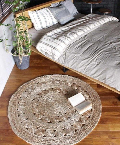 ソファの前に敷くラグとしては小さすぎますが、お部屋の一角やベッドの横などに敷いて使うジュートラグはインテリアを格上げしてくれます。