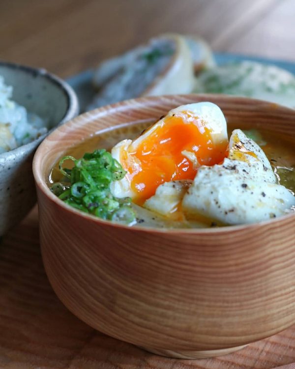 味噌汁ですがバターが入っているので、お椀に盛れば和風の献立に、スープ皿に盛れば洋風の献立にも合いますよ。
