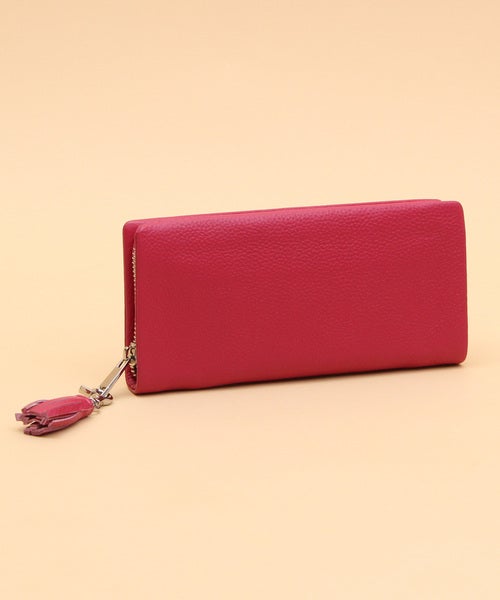 シンプルなデザインの中に、ころんと付いたタッセルが可愛いこちらの長財布は、レディース感漂うピンクをチョイス。