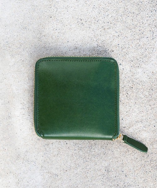 ミニマリストの女性におすすめな二つ折り財布なら、深いグリーンが印象的なこちらの財布はいかがでしょう。