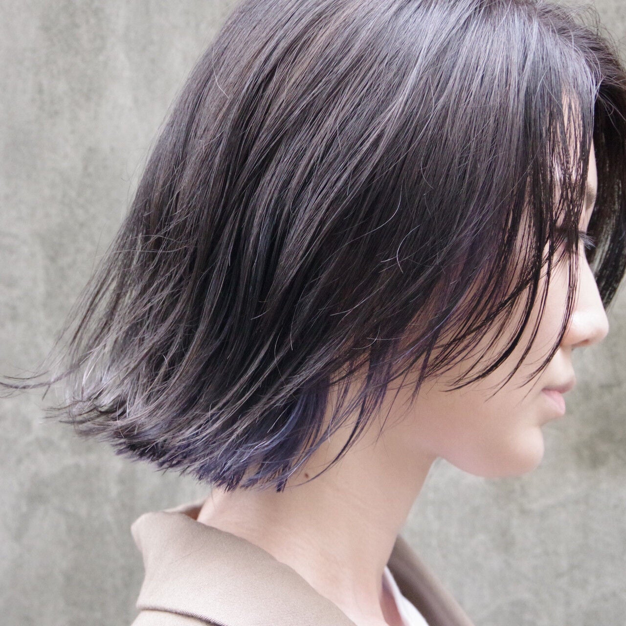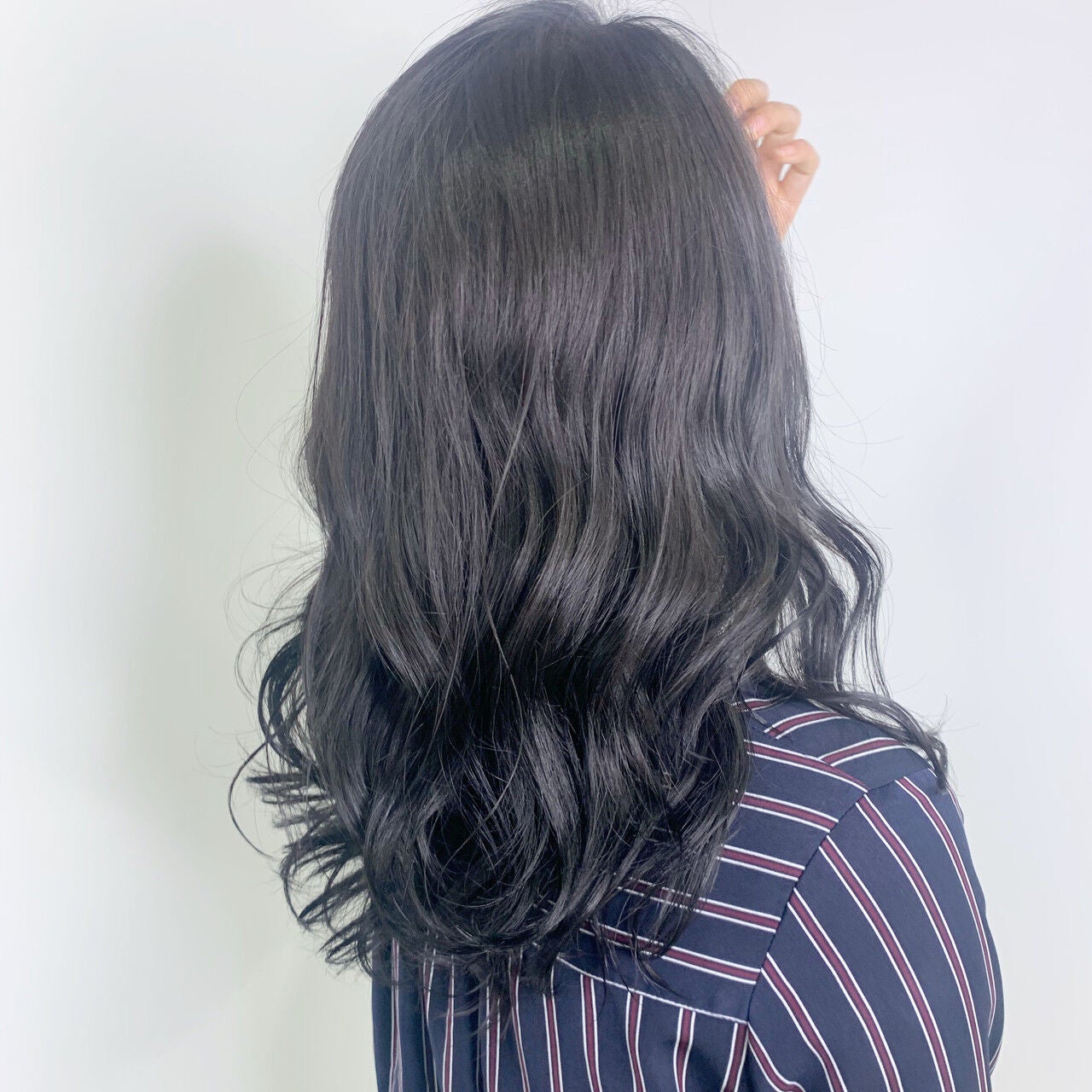 暗髪女子に人気のプラスネイビーカラーは、光が当たるとキラキラと輝きます。ミディアム・ロングの髪を重たく見せません。