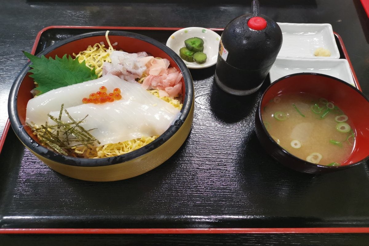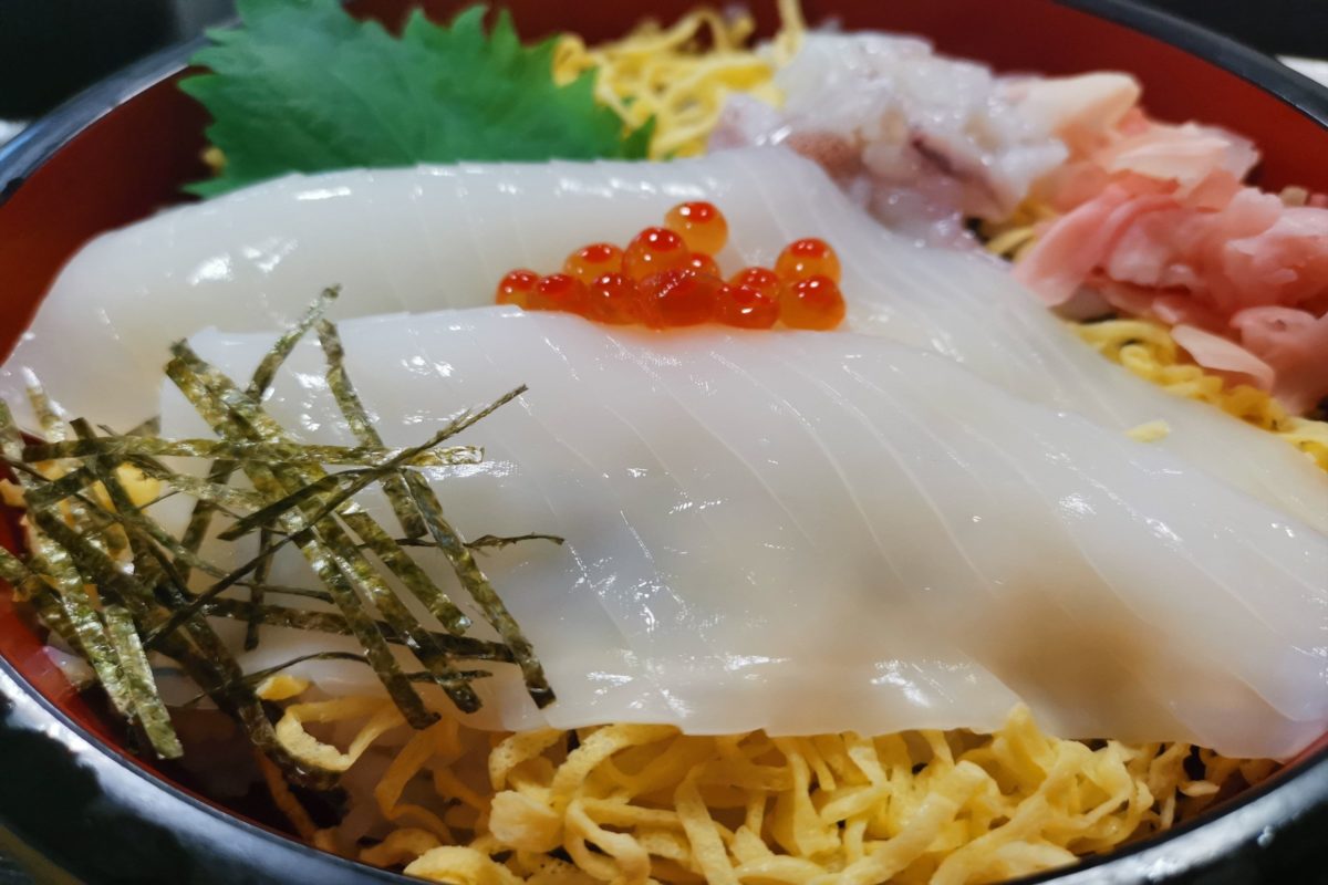 強い甘さとコリコリした歯ごたえ、そしてねっとりとした食感がたまらなく、酢飯との相性もばっちり。新鮮な白いかが手に入る境港ならではの丼と言えるだろう。