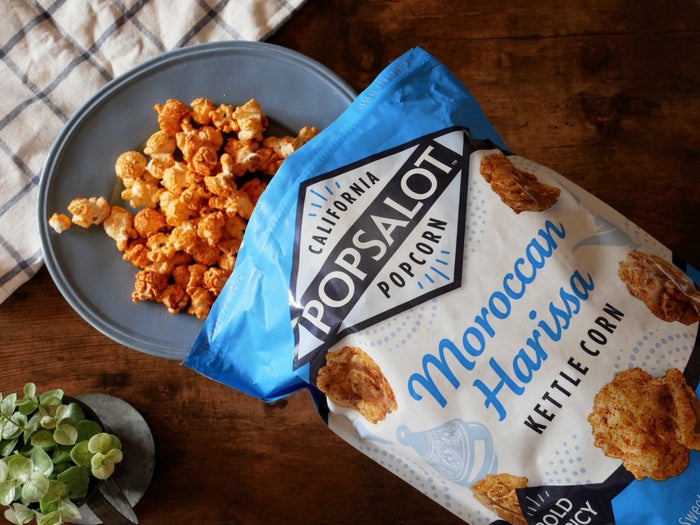 ひとつめはポップスアロットの「モロッカンハリッサ」。原産国はアメリカで300g入り828円(税込)です。ケトルコーンと書かれていますが、アメリカでは甘塩っぱく味付けされたポップコーンをケトルコーンと呼ぶそう。話題のハリッサ味でかなりの注目株です。クミン、コリアンダー、キャラウェイなどのスパイスが効いた味付けがアクセントになっていますよ。