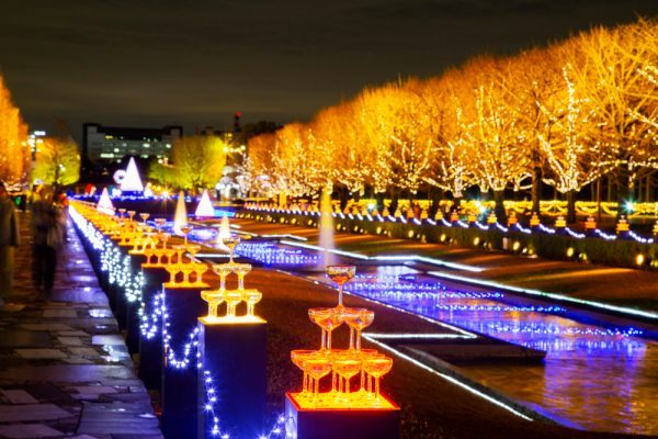 花見やイチョウ狩りで人気の東京立川市にある「昭和記念公園」。実は夜になるとイルミネーションの穴場スポットに変身します。