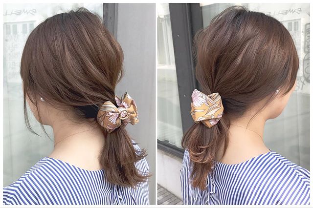 結び目にヘアクリップを付けたら簡単にゴムも隠せて一石二鳥。黒髪にシルバーのアクセントが映えますね♡