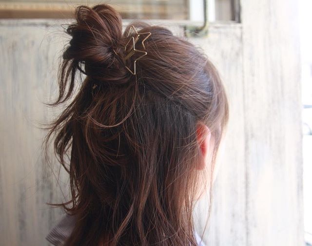 星型の可愛いヘアクリップも、くすみカラーをチョイスし、結び目にちょこんとつける使い方をすることで大人っぽさを醸し出すことができます。