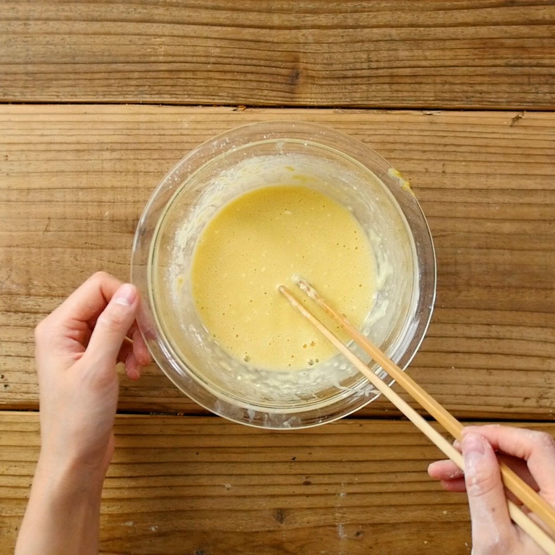 ボウルにバッター液の材料を混ぜ合わせます。