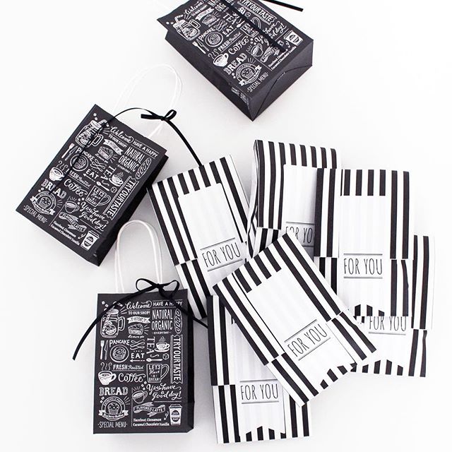 こちらは、全体的にモノトーンデザインのバッグを使ったラッピング実例です。