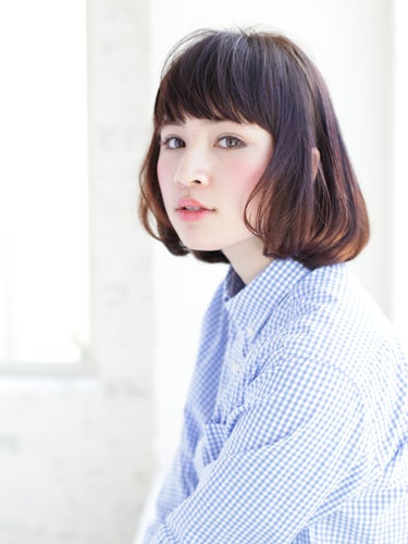 ぱっつん前髪は面長さんにおすすめの前髪の1つで、おでこを見えないようにすることで縦幅が気になる顔の形の大人女子に似合います。