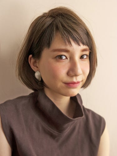シンプルなミニボブですが、ワイドバングかつトップのボリュームが控えめなため面長さんに合いやすく、シンプルで落ち着いた髪色のため大人女子も挑戦しやすいですね。