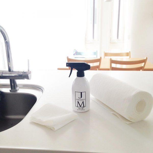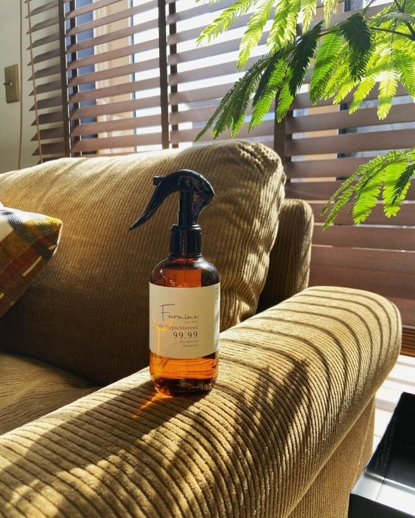 洗濯しづらいソファも、しっかりと除菌をしておくのが肝心です。実例のようなおしゃれなスプレーなら、インテリアに良くなじみます。