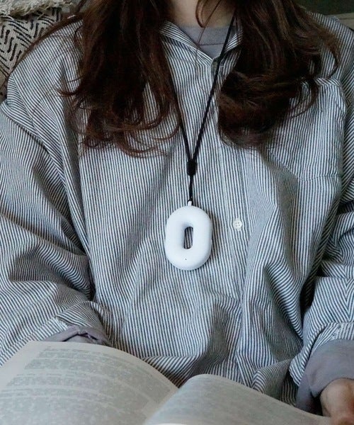 首下げもできるコンパクトな空気清浄機です。ネックレスのようにかけるほか、バッグやベビーカーなどに取り付けるのも良さそうですね。