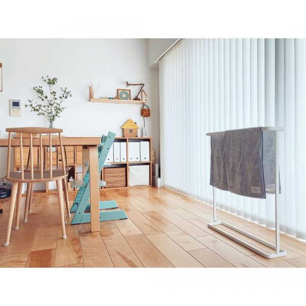 実例のようなコンパクトなタイプのタオルなら、複数枚かけていても邪魔になりませんね。