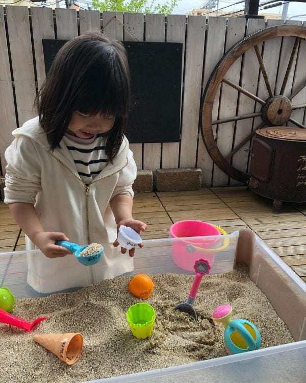こちらのインスタグラマーさんは、ベランダに砂場コーナーを作ってみたそうです。