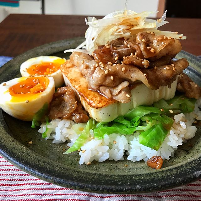 こちらはキャベツと豚バラの豆腐ステーキ丼。
