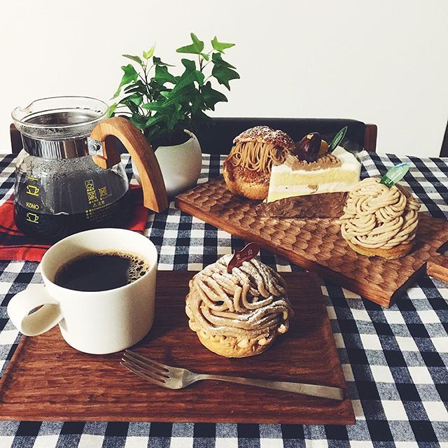 こちらはカッティングボードに、ケーキを並べた盛り付け例。