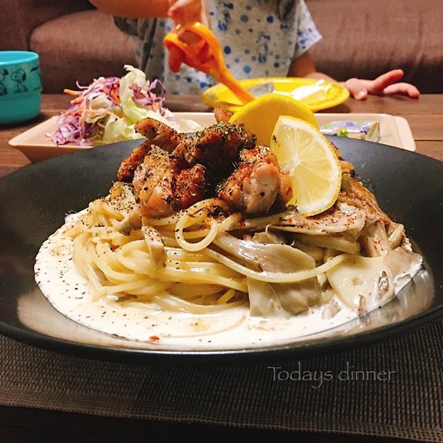 クリームパスタは特に単色になりやすく、高さを出さないとのっぺりとした印象になりがちです。