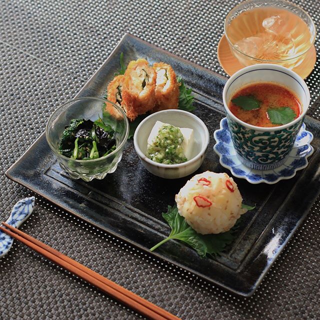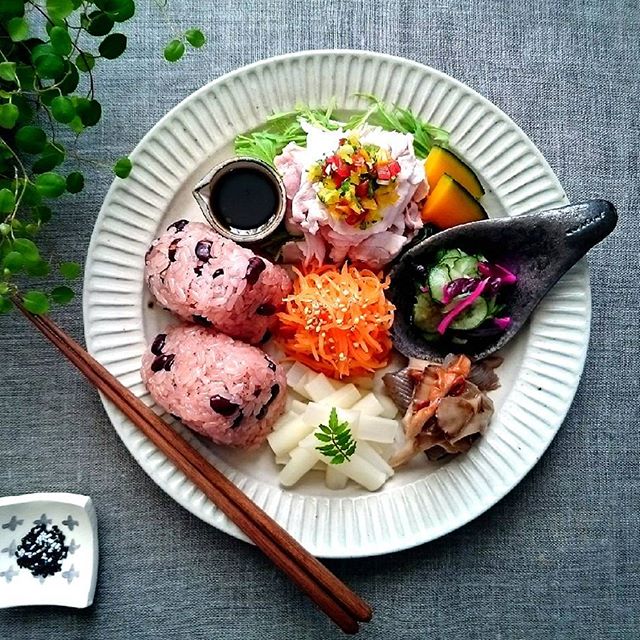 こちらの例のような盛り付け方なら、おかずがたくさんなくてもおしゃれで豪華に見せることができます。