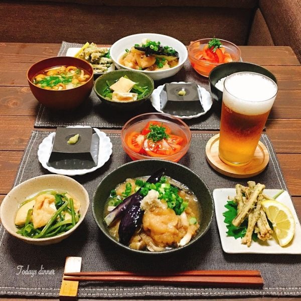 しめじを一緒に煮て、トッピングで揚げたなすや青ネギ、おろし生姜、大葉などを乗せるとボリュームも出て美味しくなりますよ。