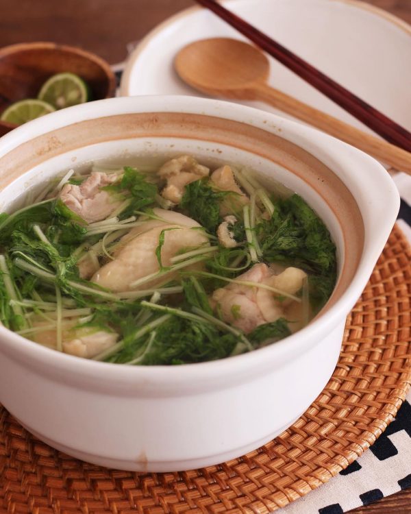 具材は鶏肉と水菜だけ、液体塩こうじと本だしのシンプルな味付けなので、胃腸にあまり負担をかけたくない時のメインおかずにもいいですよ。