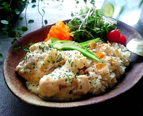 こちらは鶏肉とカリフラワーのクリーム煮のレシピで、ガーリックライスなどご飯の上にかけても美味しい絶品の煮込み料理。