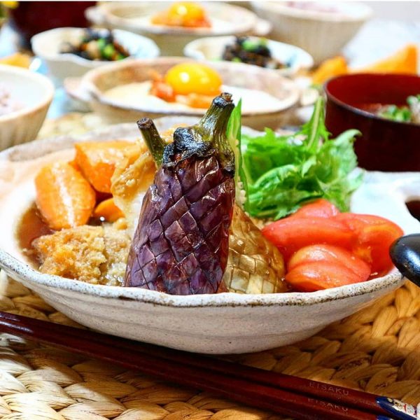 チキンカツや素揚げした野菜をサッと煮て、たっぷりの大根おろしとなめたけをトッピングしたかあさん煮は、揚げ物のチキンカツを野菜と一緒にさっぱりと食べられる嬉しいおかずです。