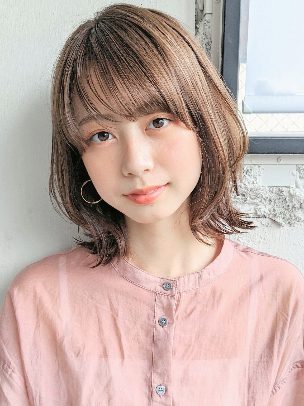 お顔の輪郭が気になる丸顔さんは、前髪をつくるとバランスが良くなります。ふんわり内巻きにすると優しい表情に♡