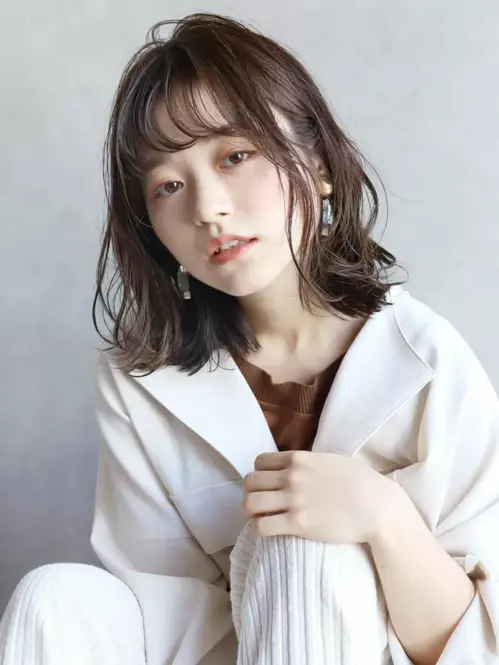 ふわっと揺れる大きめのカールが特徴的なボブディです。前髪はかきあげるように毛流れを作ってナチュラル感をプラス。カラーはブラウン系で、冬らしく温かみのある髪色に。