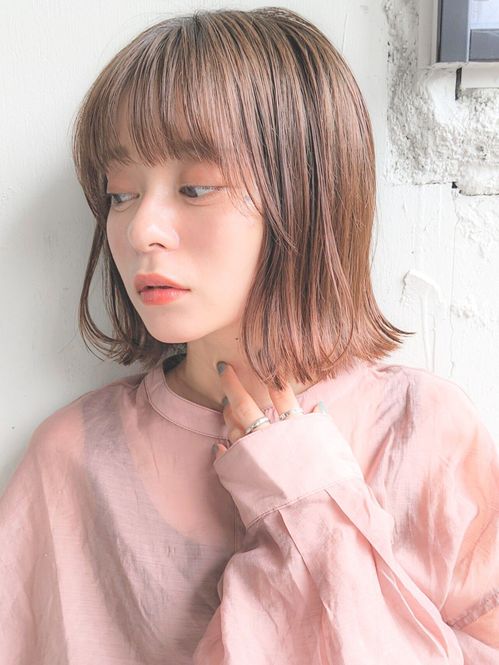 一般的に切りっぱなしスタイルは重めな仕上げりになりますが、レイヤースタイルと合わせることで今シーズンらしい透け感たっぷりのスタイルにクラスアップできます。なお、顔周りの重心を低めに設定することが似合わせのポイントです。