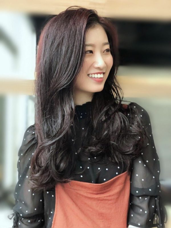重い印象を持たれがちなロング×ダークヘアは、かき上げバングで清潔感を演出しましょう。