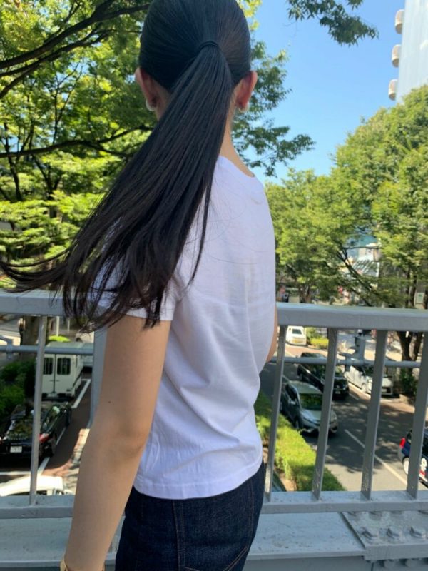 髪を後ろで結ぶだけの簡単なヘアアレンジ方法ながら、すっきりした清潔感あふれる髪型に大変身。