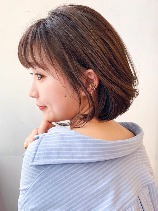 また襟足を短くカットした前下がりボブなら、首回りがすっきり見えるのが特徴。