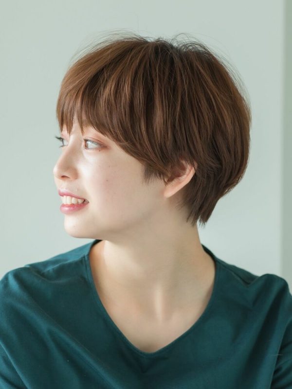 毛先が揃いすぎない自然なマッシュショートで、ナチュラルかつ清潔感のあるすっきりした髪型に仕上げましょう。