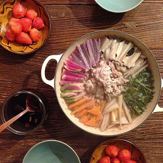 パーティーにも♪カラフルな豚しゃぶ鍋