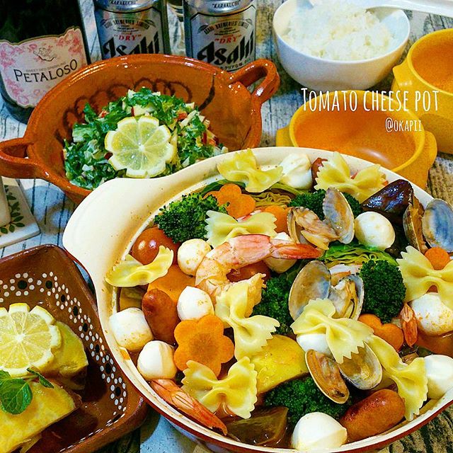 トマトとチーズの組み合わせは間違いなので、一度鍋に入れてみてはいかがですか?たっぷりの野菜を入れて栄養満点にしています。