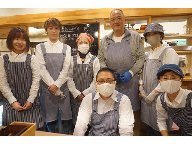 スタッフの皆さんと浅古さん(写真上)。