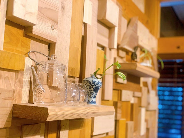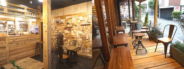 店内もテラス席も、木材をふんだんに使っていて木の香りがただよう。どこにいてもくつろげる、温かみのある雰囲気だ。