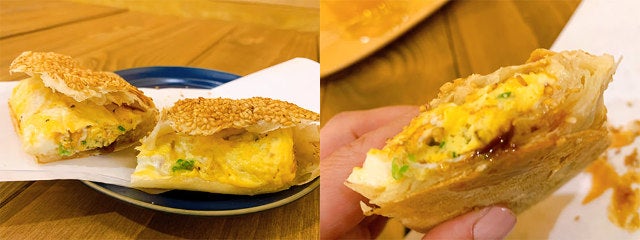 焼餅夾蛋(シャオピンジャーダン) 300円 ※販売時間は11:00まで