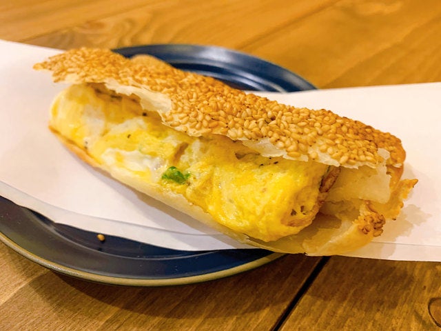 さて、胡椒餅と並んでスタッフに大人気の朝食メニューは、「焼餅夾蛋(シャオピンジャーダン)」(写真上)。細長く伸ばして胡麻をまぶした生地を窯で焼いたパイ風の「焼餅(シャオピン)」に、卵焼きをはさんだもので、自家製台湾マヨネーズと、日本では入手困難な台湾産とろみ醤油が隠し味だ。
