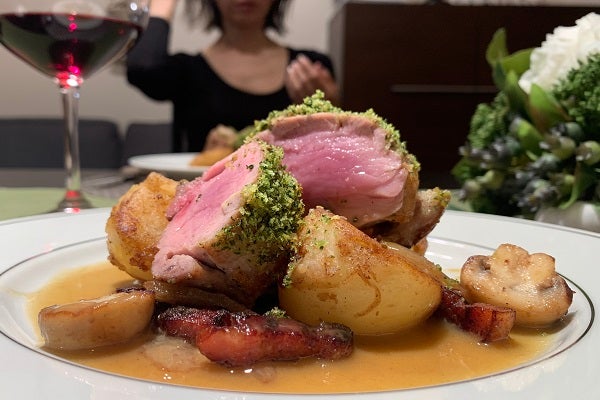 ですから、キッチンで見習中も練習で1.お肉を焼きます。2.寝かします。3.切ります。4.そしてシェフのチェックが入ります。その時点で赤身がなくなり中まで焼き過ぎてしまっていると「入っちゃてんじゃねーか!」と怒られるわけです。逆にここで肉汁を「ドバッ!」と出してしまったり、生焼けの断面を晒すことになると「寝かしが足りん!」とか「若いだろ!」と言われちゃいます。