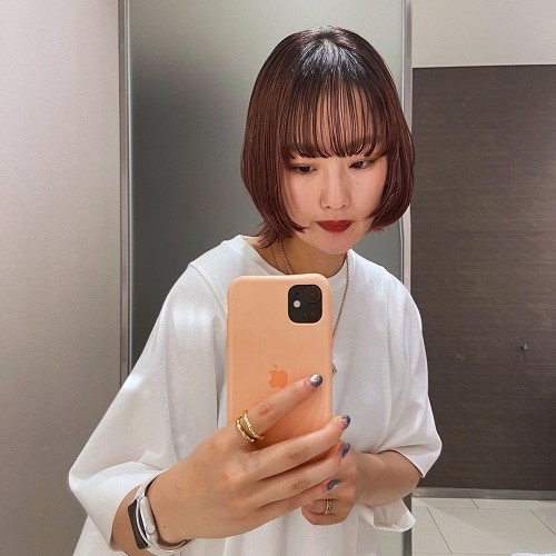 こめかみ辺りまで広めにカットした“ワイドバング”は、個性的かつかわいらしい印象を与えてくれるヘアスタイルです。