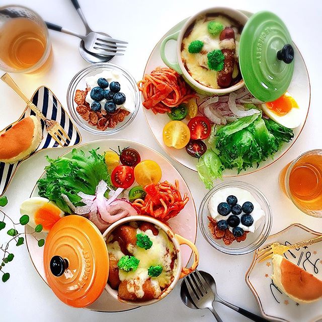 大きなプレートにグラタン皿やココット皿を組み合わせれば、カレードリアなどのメニューもおしゃれに盛り付けられます。