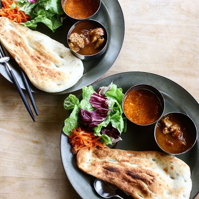 ナンが綺麗に見えるように、色の濃いプレートを選ぶのがおすすめです。