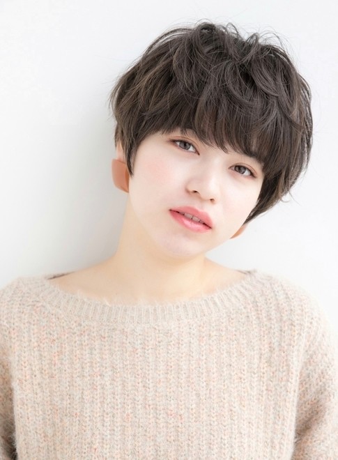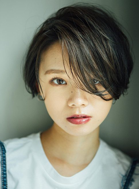 分け目を作らずに毛の流れを強調したマッシュ系ショートです。前髪はやや長め、襟足は短くカットすることでメリハリのあるシルエットに。柔らかい質感にするため、毛先に緩めのパーマをかけています。
